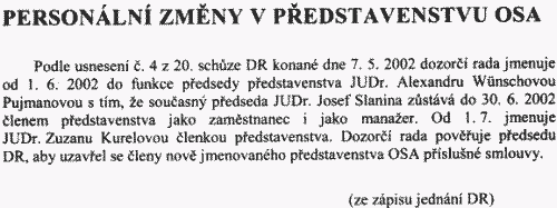 Související téma: | od 1.6.2002 je řed. OSA JUDr. Wünschová | o co jde občanskému sdružení OSA? | |