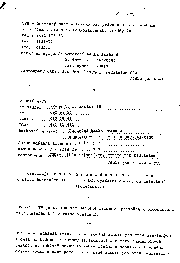 OSA - PREMIÉRA TV, smlouva z 11.1.1994